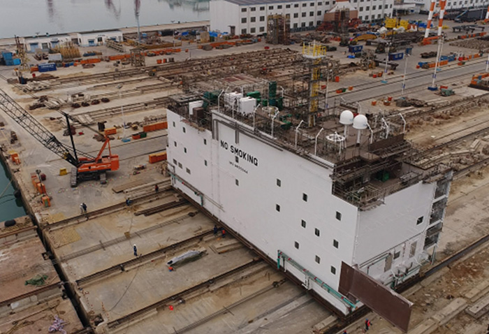 For P80 and P83 projects, the work scope of CIMC Raffles includes the FPSO hull and living quarters. The daily processing capacity reaches 225,000 barrels of oil, the oil storage capacity is 1.6 million barrels, and the natural gas storage capacity is 1 million cubic meters. The project is one of Petrobras' s largest FPSOs. The hull is 345.3 meters long, 60 meters wide, and has a total weight of 90,000 tons. It is the one of largest FPSO projects constructed in China.