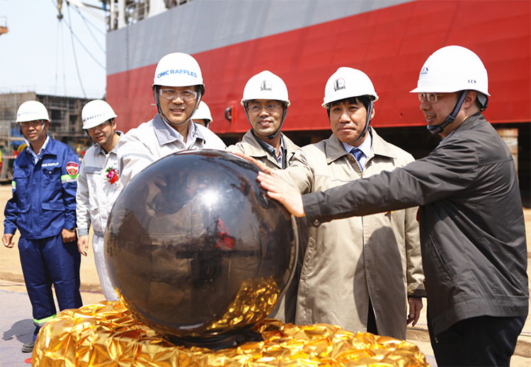 5月2日上午10:58分,中集來福士為中石化勝利石油工程有限公司建造的自升式鉆井平臺“新勝利一號”在公司碼頭舉行了隆重的下水儀式。中石化勝利石油工程有限公司相關領導出席了儀式。