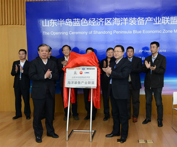 2014年12月29日,山東半島藍色經濟區(qū)海洋裝備產業(yè)聯盟揭牌儀式在煙臺中集海洋工程研究院舉行。山東省區(qū)域辦副主任梁文躍,山東省區(qū)域辦藍區(qū)建設指導處處長韓恩澤,煙臺市政協副主席、市發(fā)改委主任王式亮,山東半島藍色經濟區(qū)海洋裝備產業(yè)聯盟理事長、中集來福士總裁于亞等領導、企業(yè)家、專家出席儀式。