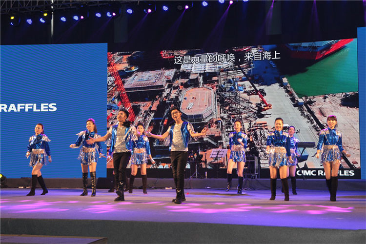 年會(huì)現(xiàn)場(chǎng)氣氛熱烈,員工自編自導(dǎo),精心準(zhǔn)備已久的精彩節(jié)目悉數(shù)登臺(tái)。《威風(fēng)鑼鼓》敲出了中集來(lái)福士2014年的精彩,打出了中集來(lái)福士2015年必贏的信念。由各部門帶來(lái)的《舞動(dòng)串燒》舞出了中集來(lái)福士人的精神風(fēng)貌,他們火熱的舞姿,贏得臺(tái)下一片片喝彩。地方話相聲《一路走來(lái)》用質(zhì)樸的方言講述了一位公司老員工眼中公司的巨大變化。《說(shuō)唱來(lái)福士》用活潑的歌詞和靈動(dòng)的舞步歌頌了中集來(lái)福士在過(guò)去一年所取得的成績(jī),中集人的自豪感流露在每個(gè)人的臉上。由一線員工帶來(lái)《歌曲聯(lián)唱》將年會(huì)推向了高潮,《明天會(huì)更好》唱出了中集人的希望與夢(mèng)想。來(lái)自公司海內(nèi)外同事也向大會(huì)發(fā)來(lái)的拜年視頻,同時(shí)公司執(zhí)委會(huì)領(lǐng)導(dǎo)上臺(tái)向全體員工拜年,并送上新春的祝福。