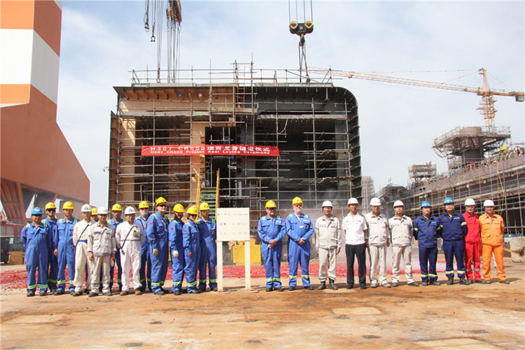 2015年9月14日上午9點(diǎn)58分,中集來福士自主設(shè)計(jì)的深水半潛式生活平臺(tái)CR600項(xiàng)目在中集來福士海陽基地開始鋪龍骨。