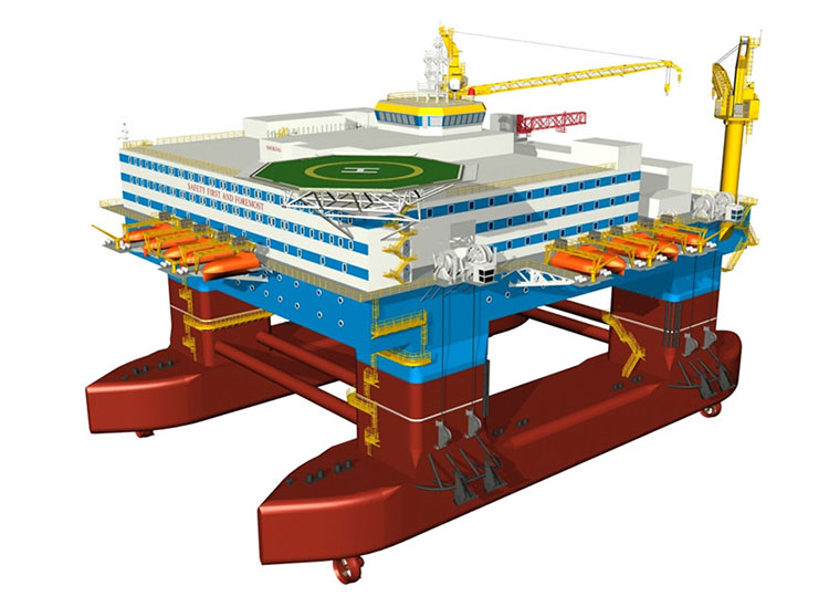 CR600半潛式生活平臺(tái)長(zhǎng)106.45米,寬68.9米,甲板面積3500平方米,最大吃水20米,配備了DP3動(dòng)力定位系統(tǒng),定員人數(shù)600人,入級(jí)美國船級(jí)社。