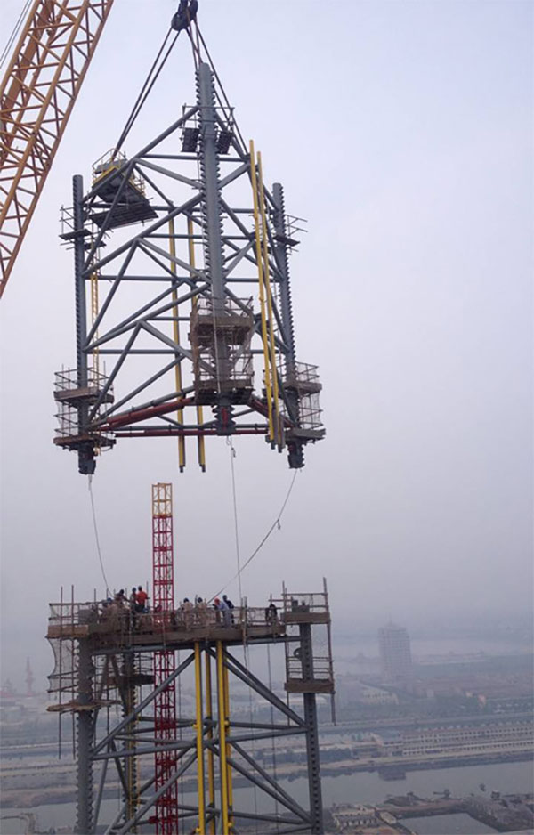 2015年9月18日下午17時37分,隨著1250T履帶吊的落鉤,中集來福士第9座Super M2自升式鉆井平臺樁腿合攏工作在龍口基地全部結束,這次創造性地在船臺上完成全部樁腿的合攏。