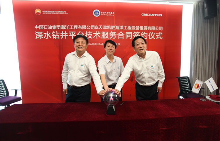 2016年8月16日,中國石油集團(tuán)海洋工程有限公司(簡稱“中油海”)與煙臺(tái)中集來福士海洋工程有限公司(簡稱“中集來福士”)在煙臺(tái)簽署了D901#超深水鉆井平臺(tái)技術(shù)服務(wù)合同。中國石油集團(tuán)公司總經(jīng)理助理王鐵軍、中油海總經(jīng)理劉圣志、中集集團(tuán)副總裁于亞、中集來福士總裁王建中等出席簽約儀式。該平臺(tái)交付后,將為中油海提供海上能源勘探服務(wù)。