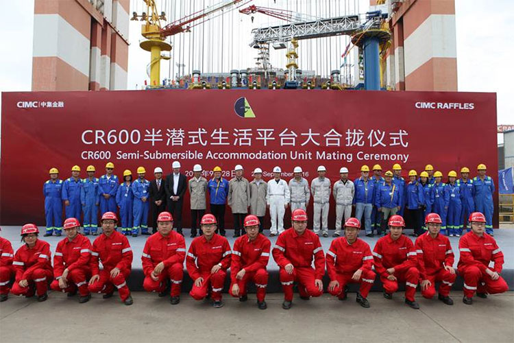 2016年9月28日上午10:00,被稱之為海上希爾頓項目CR600半潛式生活平臺,在山東煙臺舉行隆重的上、下船體合攏儀式。
