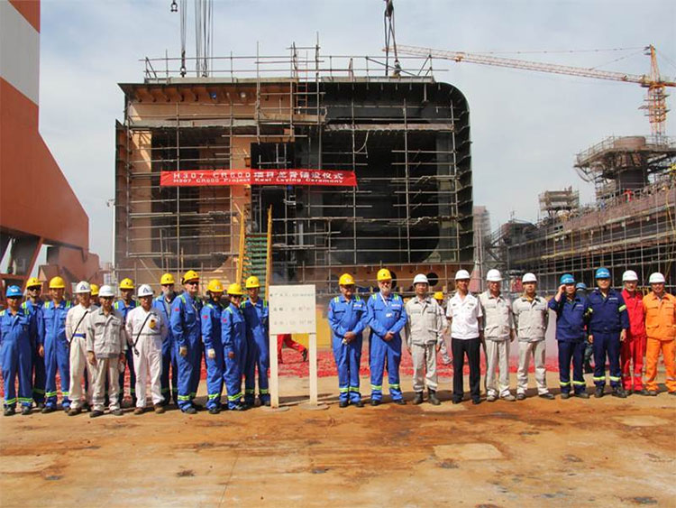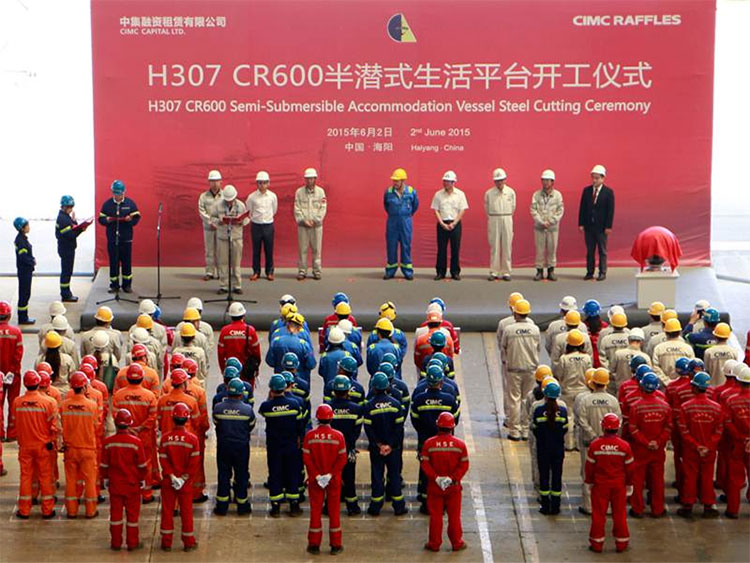 2015年9月14日上午9點58分,CR600半潛式生活平臺目在海陽中集來福士舉行鋪龍骨儀式,龍骨鋪設節點的完成,項目將全面進入分段合攏階段。