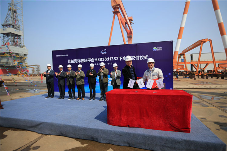 4月14日上午,中集來福士海洋工程有限公司(以下簡稱“中集來福士”)為長島佳益海珍品發展有限公司(以下簡稱“長島佳益”)承建的兩座自升式海洋牧場平臺在龍口建造基地交付。此次交付,將助力長島佳益實現管理信息化和智能化,加快海洋牧場建設步伐,對引領長島及周邊縣市海洋牧場裝備升級,推動山東省“海上糧倉”建設戰略起到良好的示范作用。山東省海洋與漁業廳、煙臺市政府、龍口市政府、長島縣政府、煙臺市海洋與漁業局、龍口市海洋與漁業局等省內50余家海洋牧場相關單位的領導及嘉賓出席儀式。