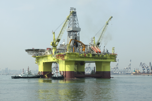 上午8點28分,在喜慶的鞭炮聲和激揚的軍樂聲中,COSLPROMOTER深水半潛式鉆井平臺由6艘拖輪牽引緩緩離開碼頭。岸上人員不斷揮手致意,并合影留念。COSLPROMOTER配有6臺推進器,由拖輪拖至錨地后,將解纜獨自航行遠赴挪威,途經太平洋、印度洋、大西洋,并在新加坡、南非伊麗莎白港等地補充燃料。平臺載有海員及工作人員100人,分別來自挪威、印度、菲律賓等國。此次航行時間長、路程15000余海里,計劃用兩個多月時間到達挪威OELENSVAG港口。