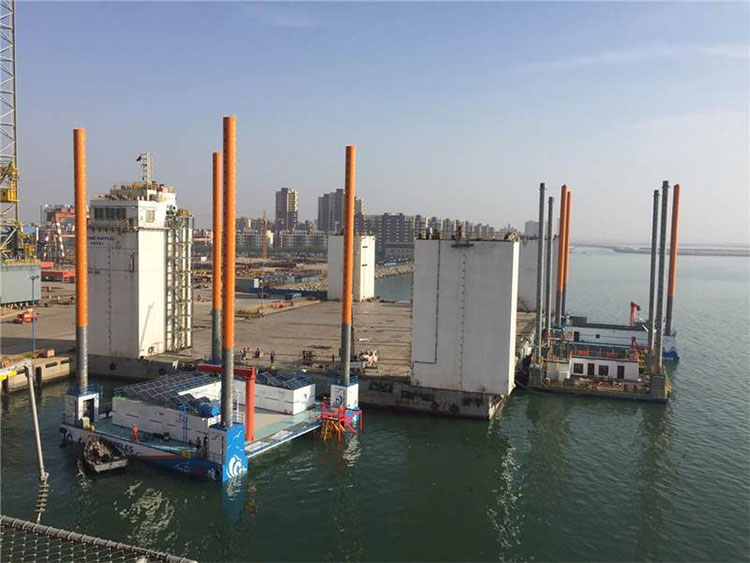 5月7日下午15:38分,由項目、技術、生產組成的實驗小組開始進行傾斜試驗相關準備工作。因為海洋牧場平臺產品的特性,本次傾斜試驗與以往自升項目的試驗方法有所不同,采用調整配重塊的方式進行。為此,整個項目團隊在前期編制了專門的實驗方案并先后對方案進行了多次評估。為保證實驗的安全順利完成,還依據實驗方案制訂了詳細的工作計劃、風險分析及對策等。經過實驗小組的共同努力,順利完成傾斜試驗數據讀取及技術分析。