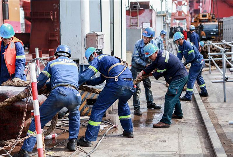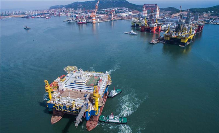 2017年5月20日,中集來福士高端半潛式生活平臺在拖輪的牽引下緩緩離開碼頭開始為期16天的試航之旅。