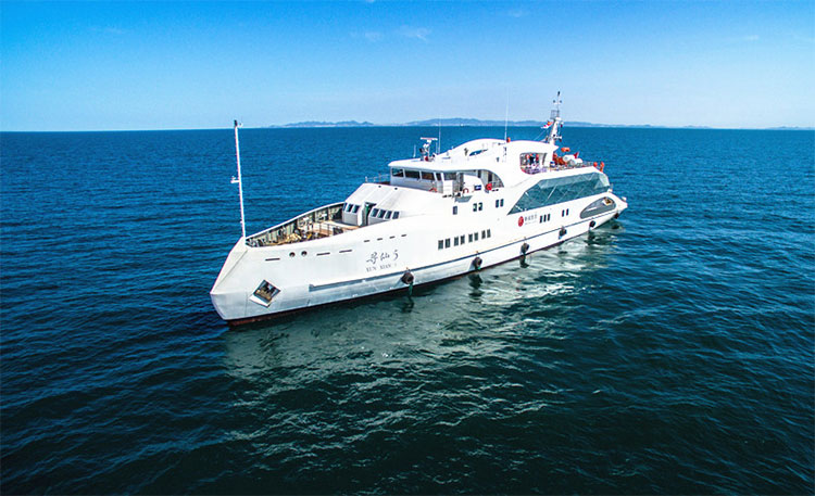 4艘“求仙”系列99客位主題游艇是中集來福士在游艇領域打造的又一精品工程,用于秦皇島沿海航線、崆峒島沿海航線及環島游。“求仙”系列在造型設計上也別具特色,采用戰斧式船首和流線型設計,外觀美麗大方,還能夠提高游艇的航行性能和舒適性。在建造工藝上,船體與上建均用鋼制結構,可靠耐用,尤其適用于暗礁、浮冰、地形復雜的海域。此外,“求仙”系列觀光甲板人均面積達到1.5平方米,游客可以一邊舒適地吹海風、喂海鷗、看風景,一邊在山水間感受“仙人境界”。