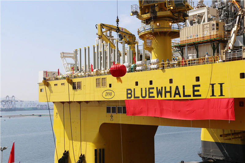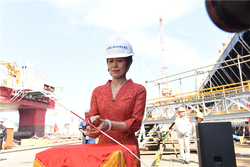 9月26日,在中集來福士煙臺基地深水碼頭,“藍鯨2號”正式命名。