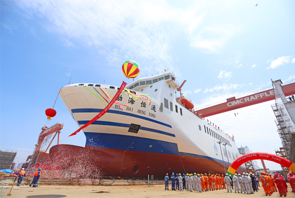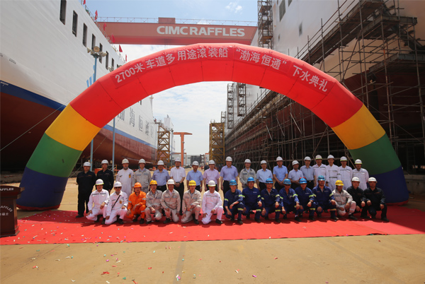 2020年6月30日上午10時38分,由中集來福士海洋工程有限公司(以下簡稱:中集來福士)為渤海恒通輪渡有限公司建造的2700米車道多用途滾裝船“渤海恒通”輪下水儀式順利在中集來福士龍口廠區順利。龍口市政府、渤海輪渡、恒通物流、龍口港、中國船級社以及中集來福士等單位代表出席了儀式。