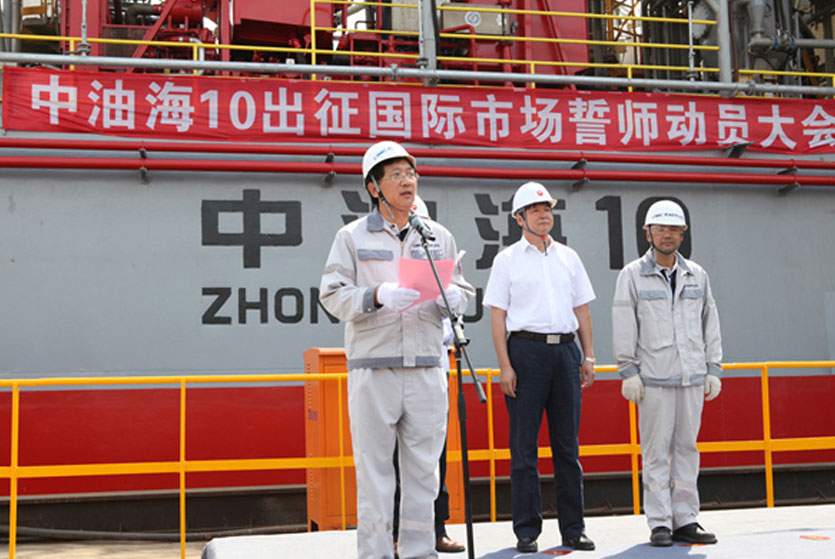總經理黃立功發表了講話。他鼓舞平臺將士們,作為第二支先鋒隊伍,承擔光榮而艱巨的任務,希望能夠堅定信心,乘勢而上,安全、高效、優質地完成海外鉆井項目。