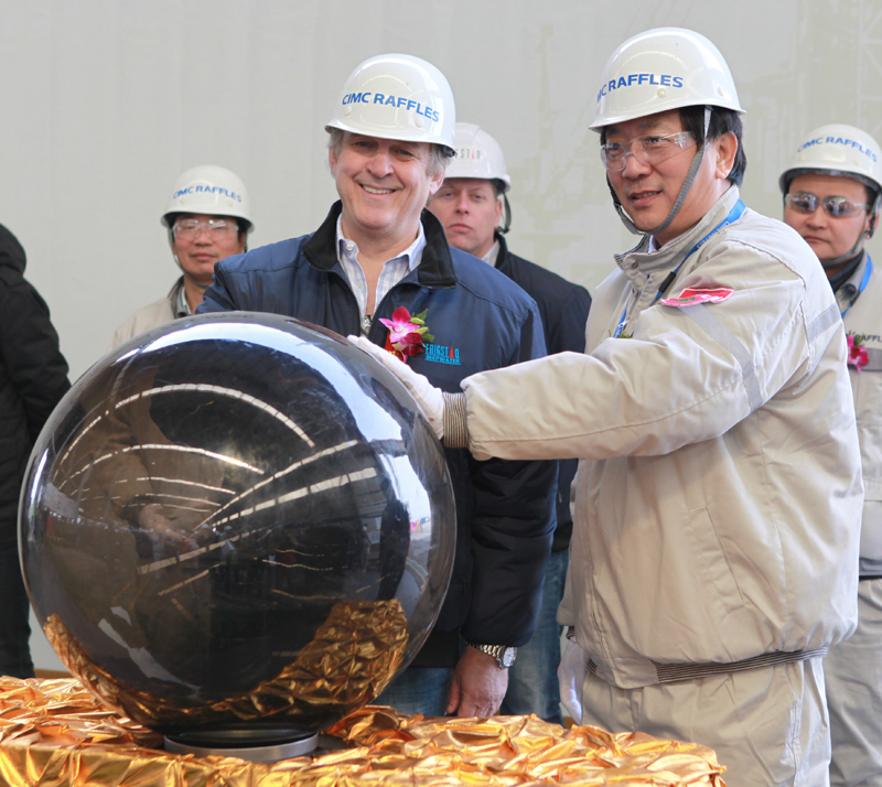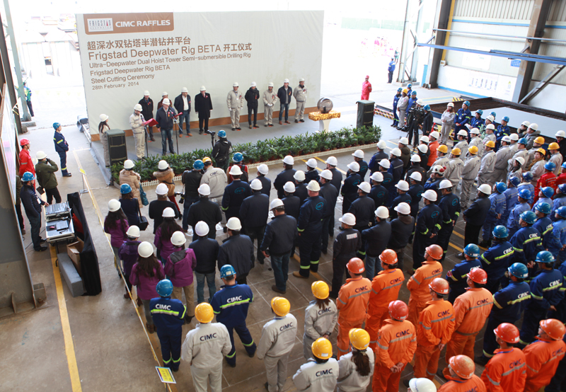 2014年2月28日上午,中集來福士為挪威Frigstad Deepwater公司承建的第二座第七代超深水雙鉆塔半潛式鉆井平臺Frigstad Deepwater Rig Beta在海陽基地開工。Frigstad Deepwater 公司總裁Harald Frigstad 與中集來福士總裁于亞共同啟動鋼板切割機。